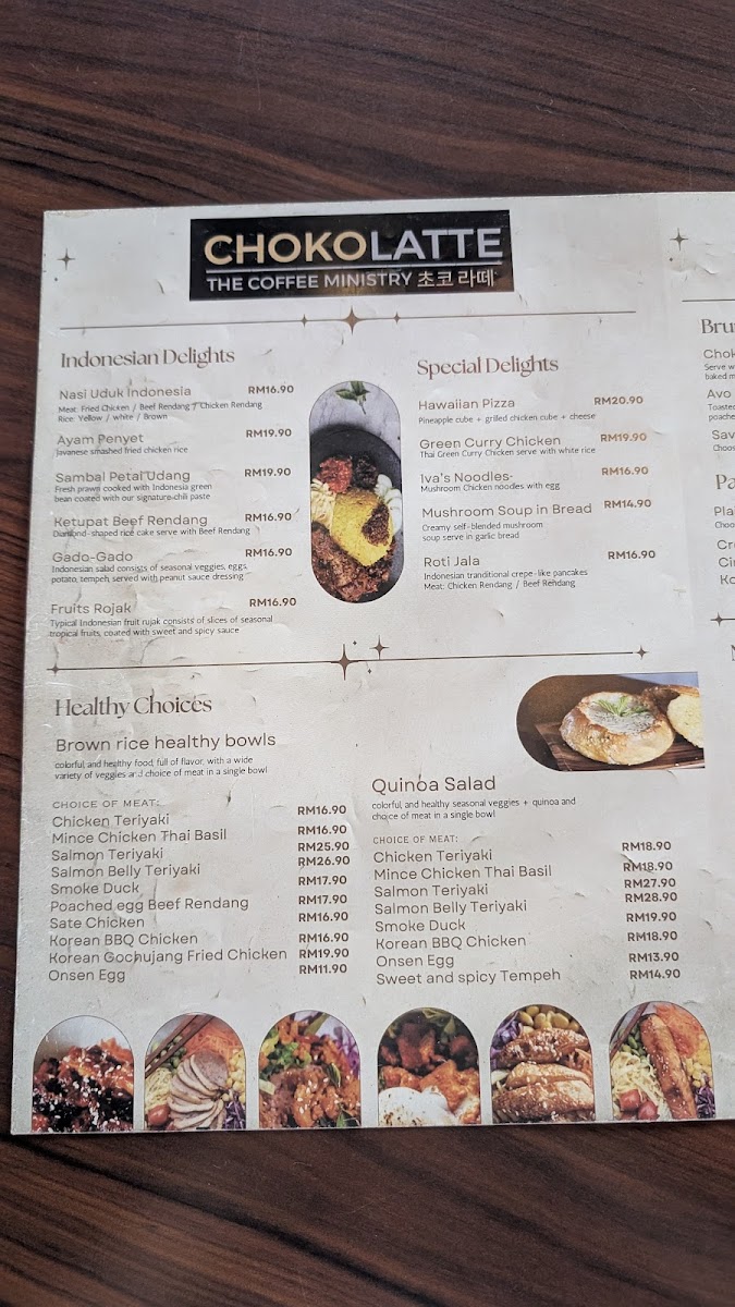 Chokolatte specializes in a fusion of both savory and sweet dishes that are sure to tantalize your taste buds. One of the standout items on their menu is the Indomie Ayam Panggang, featuring savory fried noodles perfectly paired with grilled chicken, aromatic spices, and fresh vegetables. Priced at MYR 16.90, it’s a hearty meal that promises a delightful explosion of flavors.
